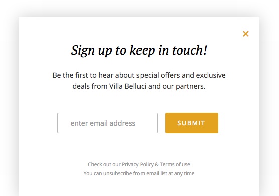 Be the first to hear about special offers and exclusive deals from Villa Belluci and our partners.
